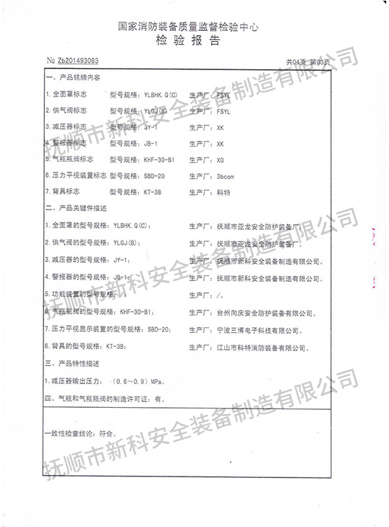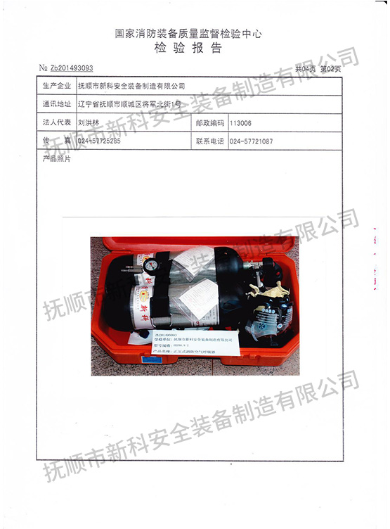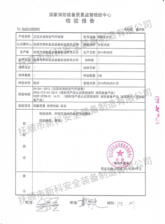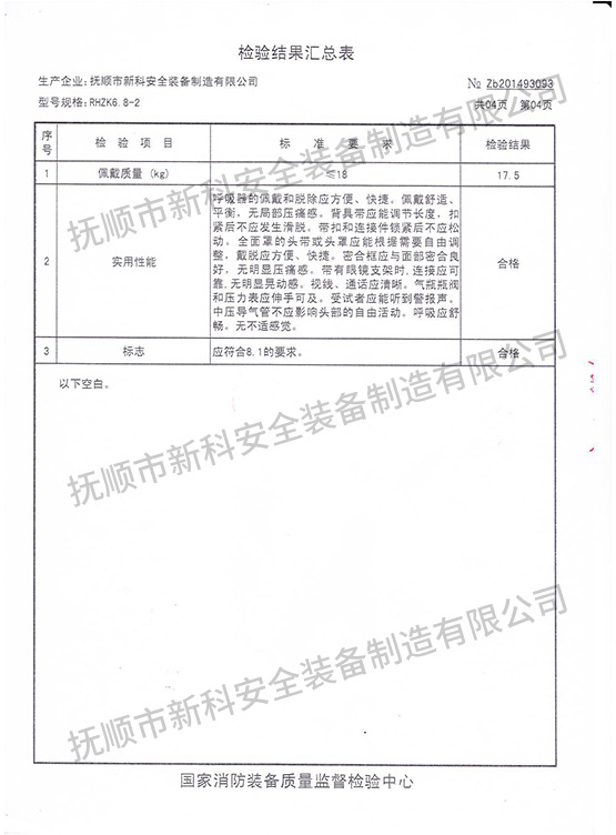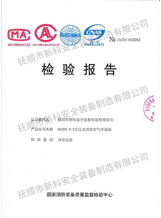 RHZK6.8-2正壓式消防空氣呼吸器-檢驗(yàn)報(bào)告