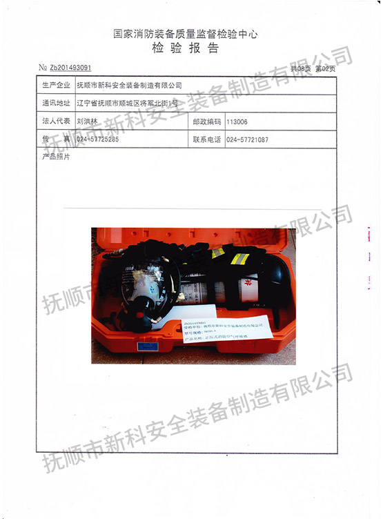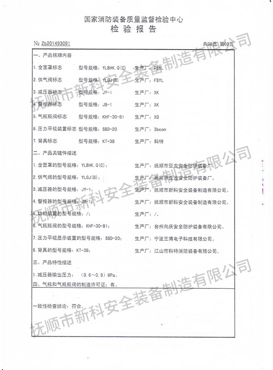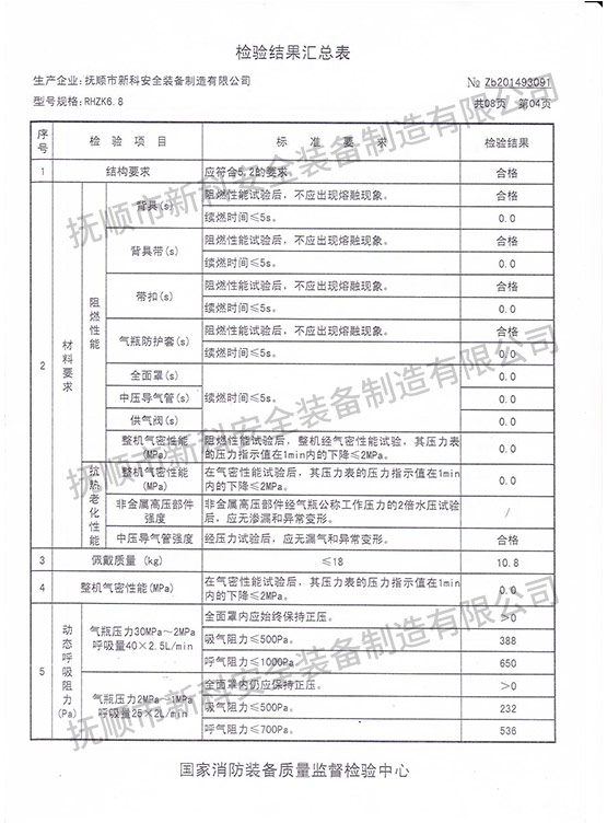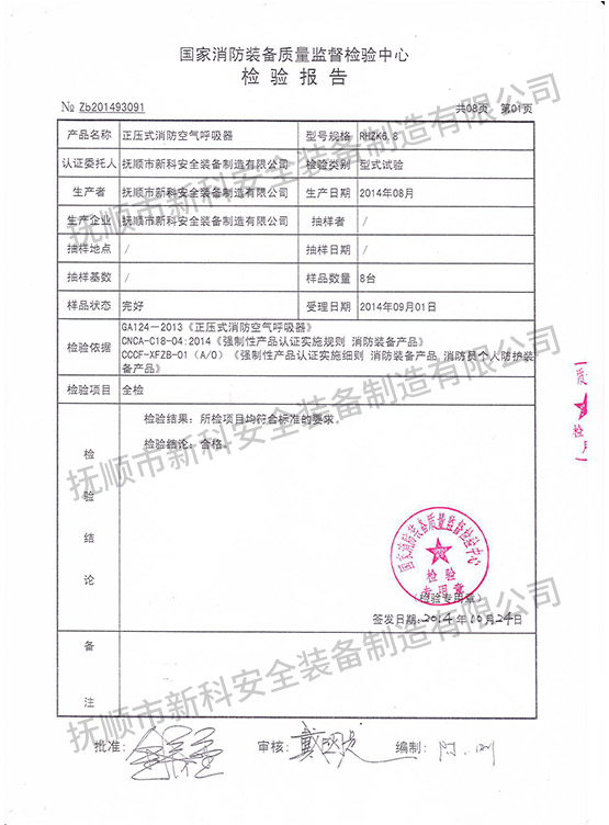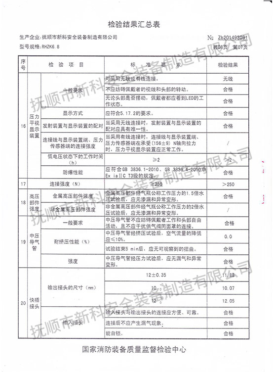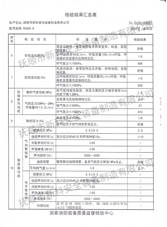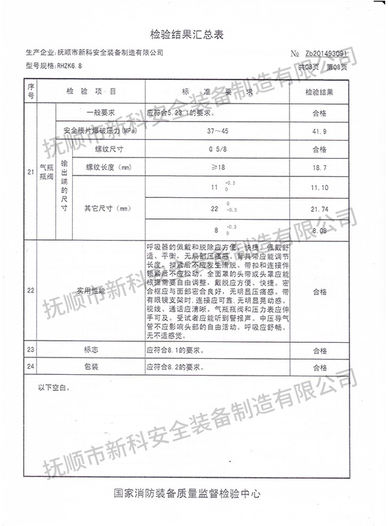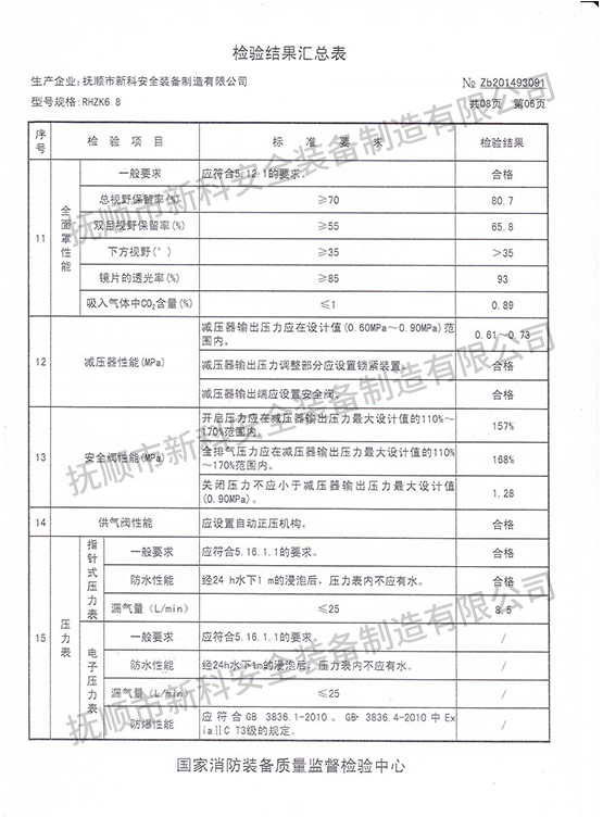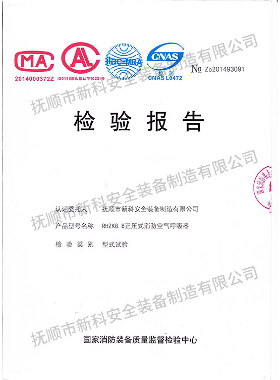 RHZK6.8正壓式消防空氣呼吸器-檢驗(yàn)報(bào)告